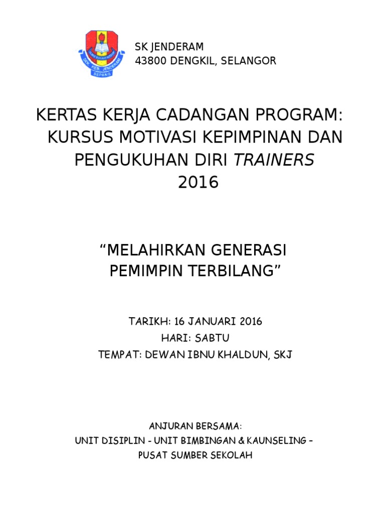KAUNSELOR NURHAIZA CHE MAT : Kertas Kerja Bengkel ... from 3.bp.blogspot.com Kursus kepimpinan pengawas sesi 2013. Contoh surat iringan (permohonan kelulusan program). Kertas kerja kursus kepimpinan kokurikulum. 210454854 synchronous generator lab report. Use the download button below or simple online reader. 11:09 pm smk bandar damai perdana. Mementingkan suasana kerja yang mesra. Menunjukkan minat yang lebih kepada orang bawahan.