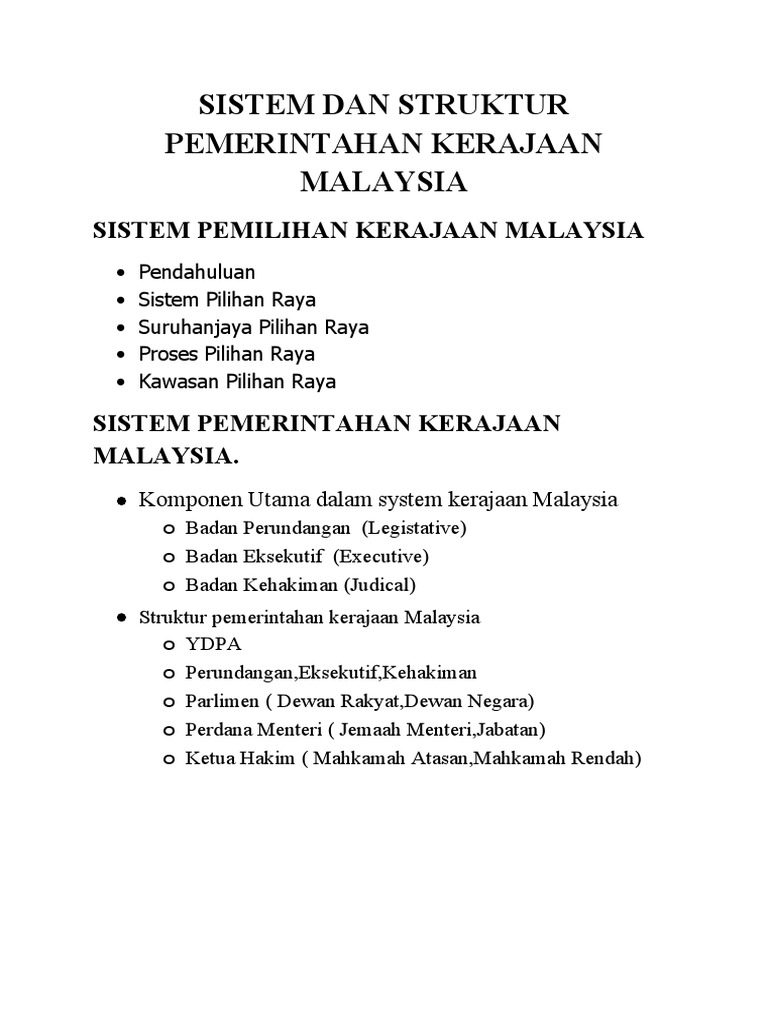 3.1 komponen utama sistem kerajaan malaysia.